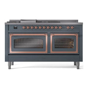 Introducing the new ilve nostalgie 60 dual fuel range, a classic addition with a touch of innovation to any kitchen. This range features sealed burners equipped with total black brass burners that have a non-stick nanotechnological coating, heavy cast iron grates, 3.5 + 2.3 cu. ft. dual oven capacity, and a soft closing door system.