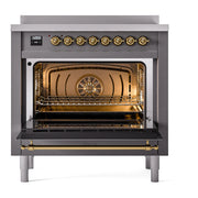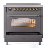 Introducing the new ILVE Nostalgie range 36 induction range, a classic addition with a touch of innovation to any kitchen. This range features 6 precise and efficient element zones, 3.5 cu. ft. dual oven capacity, and a soft closing door system, blending timeless style with modern functionality for effortless cooking.