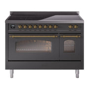 Introducing the new ILVE Nostalgie Range 48 induction range, a classic addition with a touch of innovation to any kitchen. This range features 6 precise and efficient element zones with booster function, overheating and liquid spill protection, 3.5 + 1.52 cu. ft. dual oven capacity, and soft closing door system.