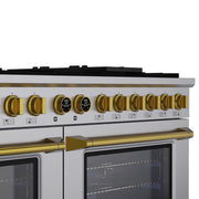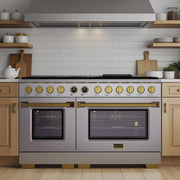 Kucht Horus 60" 7.9 cu ft. Propane Gas Dual Fuel Range in Stainless Steel with Gold Knobs, KXP60-GL/LP