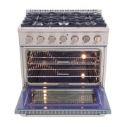 Kucht Professional 36" 5.2 cu ft. Natural Gas Dual Fuel Range with Light Blue Door and Silver Knobs, KDF362-LB