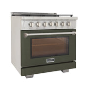 Kucht Professional 36" 5.2 cu ft. Natural Gas Range with Olive Green Door and Silver Knobs, KFX3600X-G