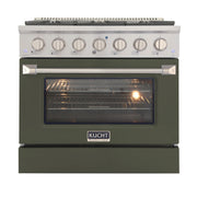 Kucht Professional 36" 5.2 cu ft. Natural Gas Range with Olive Green Door and Silver Knobs, KNG361-OG