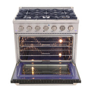 Kucht Professional 36" 5.2 cu ft. Propane Gas Dual Fuel Range with Black Door and Silver Knobs, KDF362/LP-K