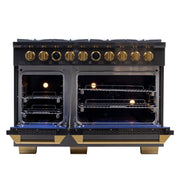 Kucht Professional 48" 6.7 cu ft. Propane Gas Dual Fuel Range in Titanium Stainless Steel with Gold Knobs, KXD48/LP