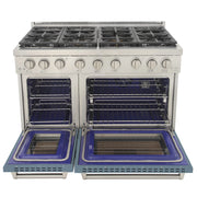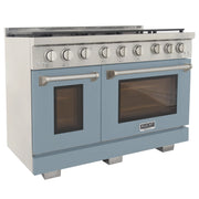 Kucht Professional 48" 6.7 cu ft. Propane Gas Range with Light Blue Door and Silver Knobs, KFX4800X/LP-LB
