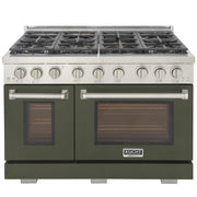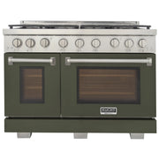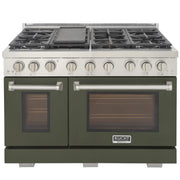 Kucht Professional 48" 6.7 cu ft. Propane Gas Range with Olive Green Door and Silver Knobs, KFX4800X/LP-G